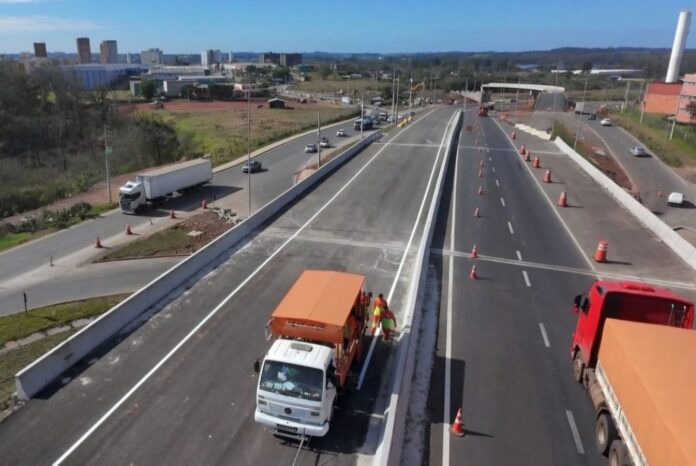 Nesta segunda-feira (11), a pista principal da RS-118 no sentido Alvorada → Sapucaia do Sul será liberada no km 22, em Gravataí, passando sobre o novo viaduto que está em construção.
