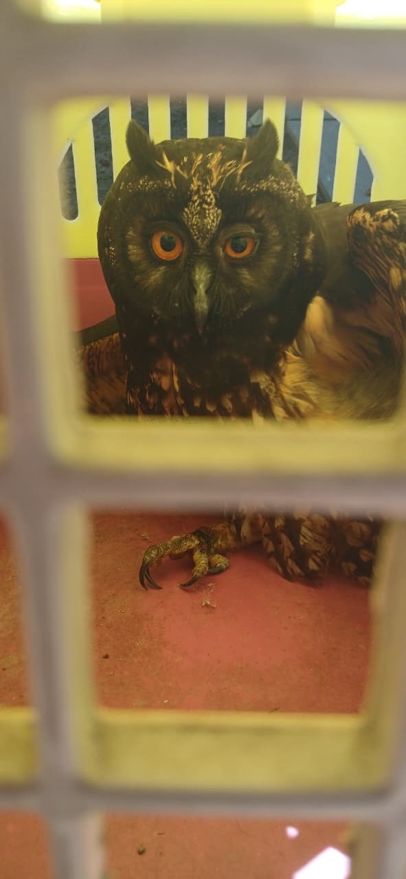 Coruja ferida é encaminhada para tratamento.