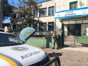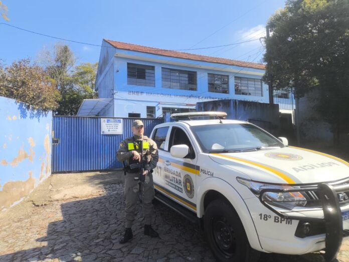 Nesta segunda-feira (11/08), a Brigada Militar, através do 18º Batalhão de Polícia Militar, segue reforçando o policiamento nos ambientes escolares, sejam eles particulares, municipais ou estaduais, através de rondas e visitas periódicas, visando garantir a segurança nas proximidades das escolas.